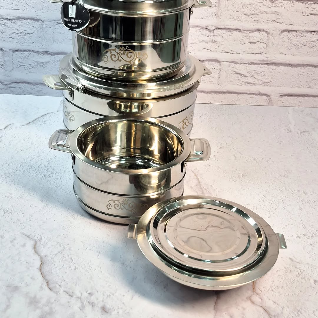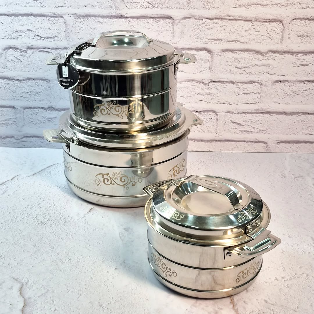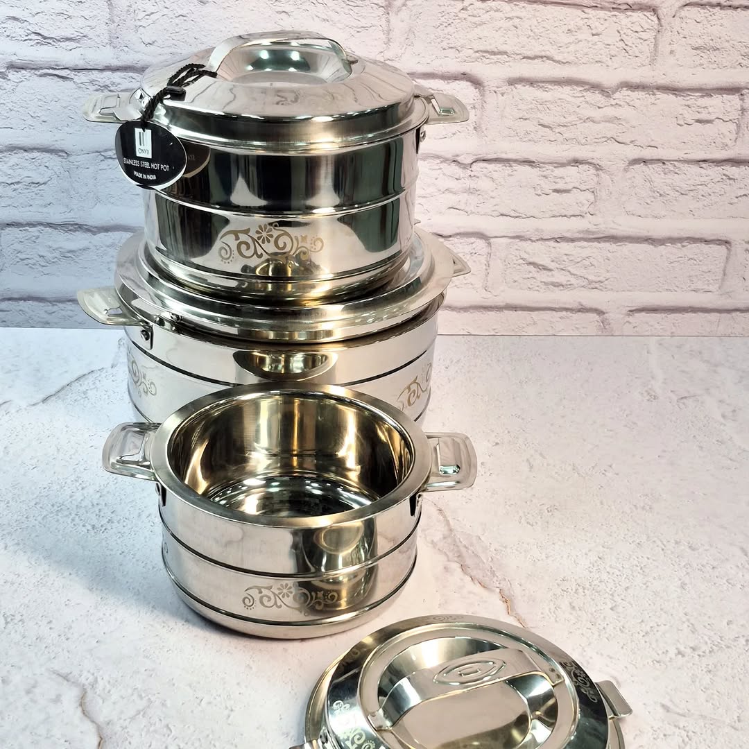 🔹️ساخت هند ا یک ست سه عددی از ظروف نگهداری غذای استیل عایقدار (هاتپات) با نام تجاری "Elixir" و مدل "ONYX" را نشان میدهد. این هاتپاتها برای نگهداری غذا به صورت گرم یا سرد طراحی شدهاند. این ست شامل سه هاتپات با اندازههای ۱۰۰۰، ۲۰۰۰ و ۳۰۰۰ میلیلیتر است. این محصولات از جنس استیل ضد زنگ عایقدار با کیفیت بالا ساخته شده