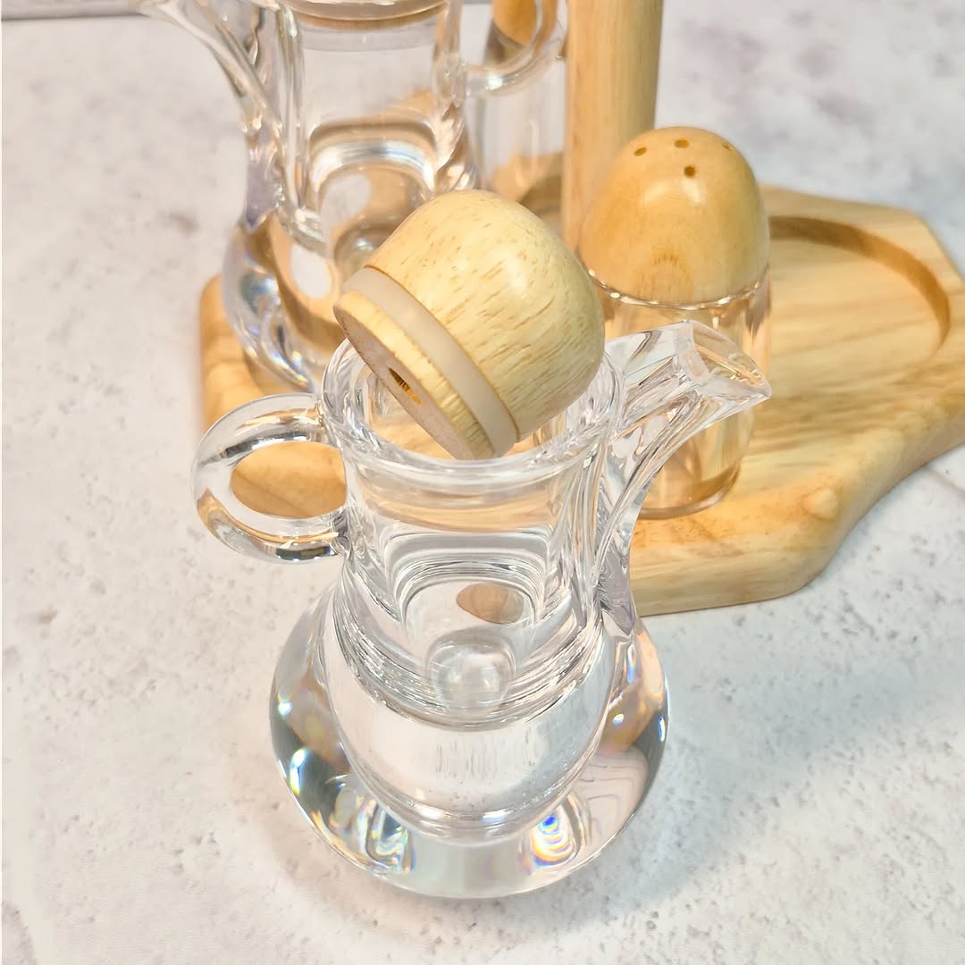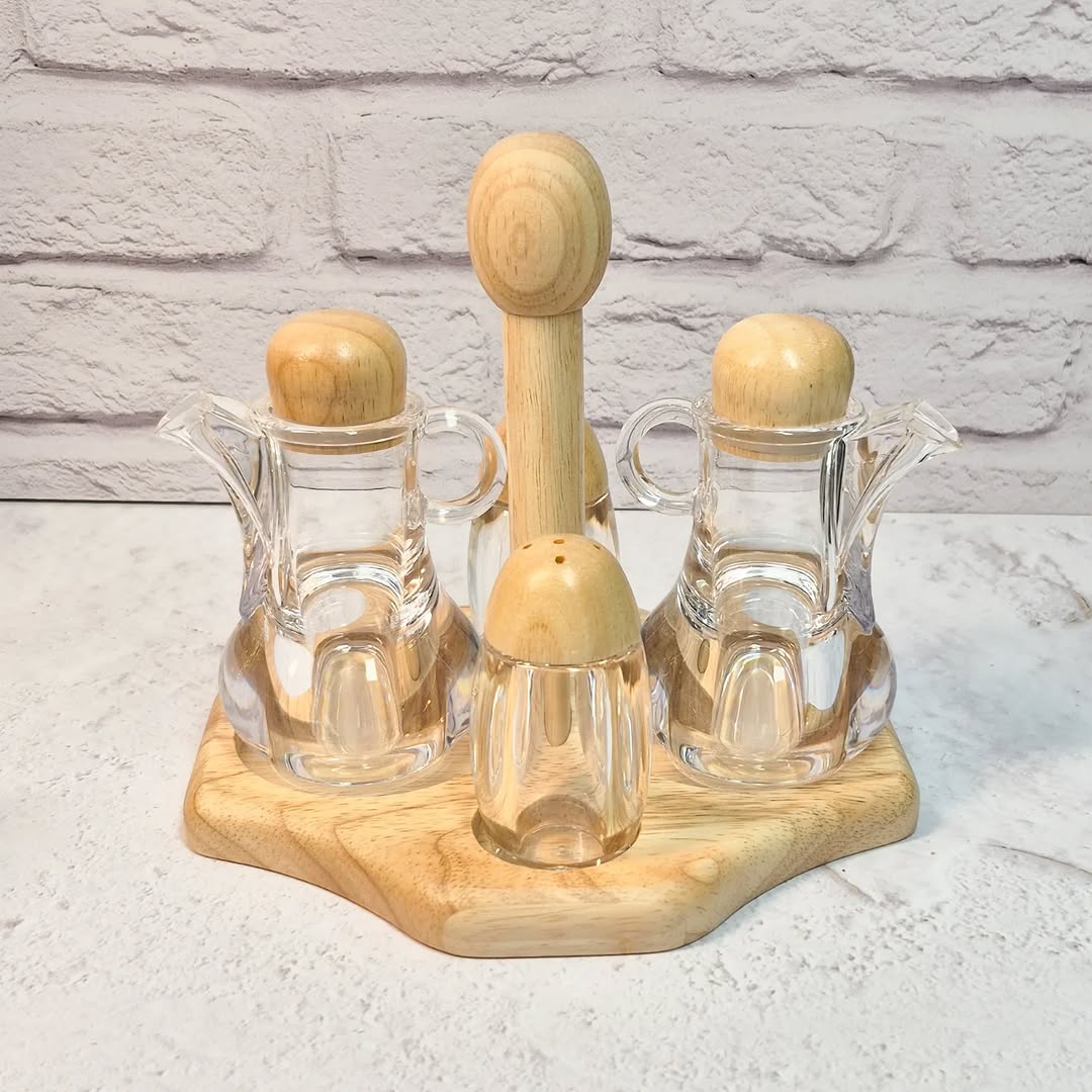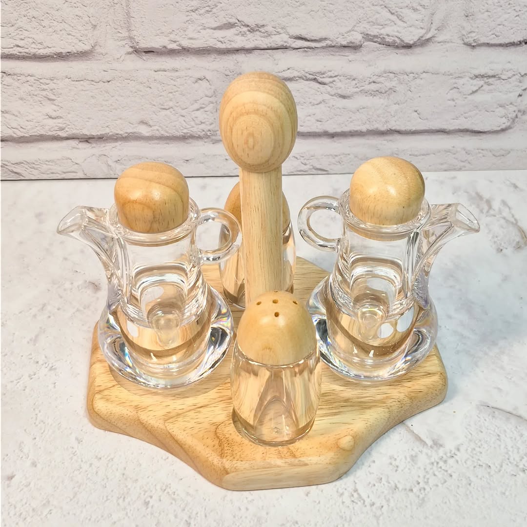 ست آبلیمو و نمکدان رومیزی 🔥😍وارداتی این تصویر یک ست نمکدان و فلفلدان رومیزی با پایه چوبی است که شامل موارد زیر میشو:اجزاء:این ست شامل دو ظرف اکرولیک برای نمک و فلفل با درپوش چوبی، ، و دو جا روغنی/سرکه خوری اکرولیک با درپوش چوبی است. همه اینها بر روی یک پایه چوبی قرار گرفتهاند. کاربرد:این ست برای نگهداری و سرو نمک، فلفل، شکر و روغن یا ،آبلیمو سرکه در سر میز غذا مناسب است. سبک:طراحی چوبی و اکرولیک آن میتواند به عنوان یک عنصر دکوری زیبا در آشپزخانه یا میز غذا نیز عمل کند.