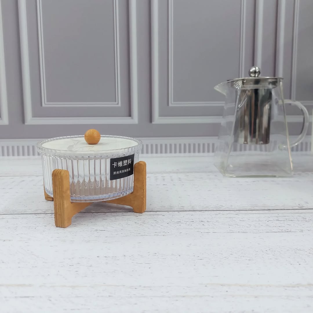 قندان پایه چوبی جنس بدنه اکرولیک درب طرح ماربلپایه چوبی